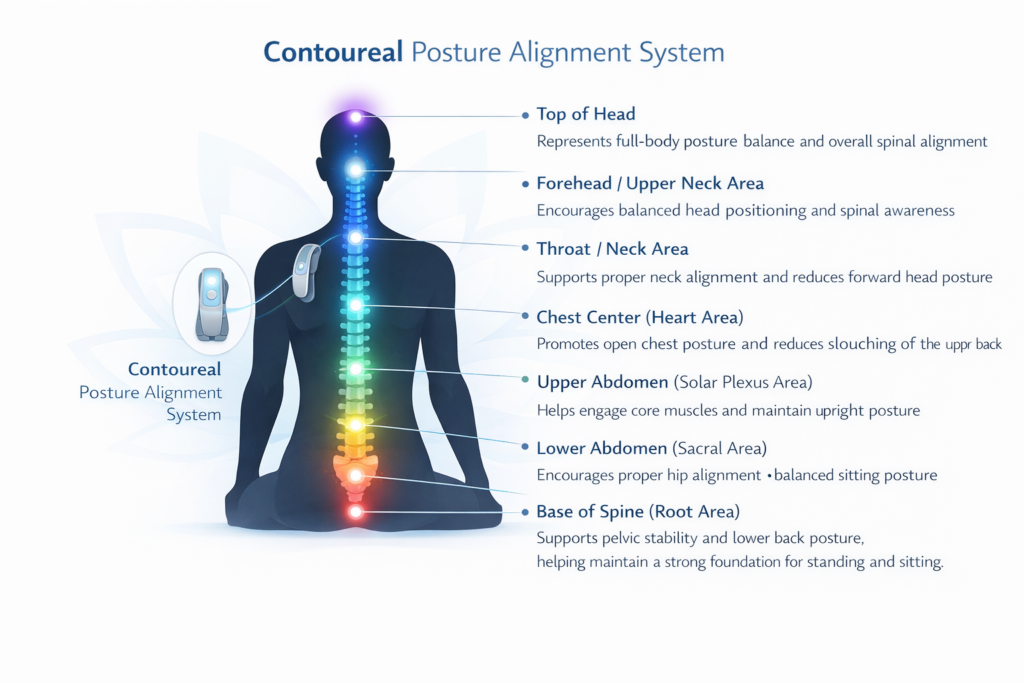 The Contoureal Posture Alignment Device creates the ideal physical foundation for chakra work. Its patented 5-point support system cradles your entire spine in its natural curvature, precisely aligning with the anatomical locations of your energy centers. While the device doesn’t directly manipulate energy, it removes physical tension and creates space for energy to flow more freely. Whether you’re meditating, practicing breathwork, or simply resting, Contoureal helps quiet the body so you can turn your awareness inward—supporting deeper states of relaxation and greater sensitivity to the subtle energies within.